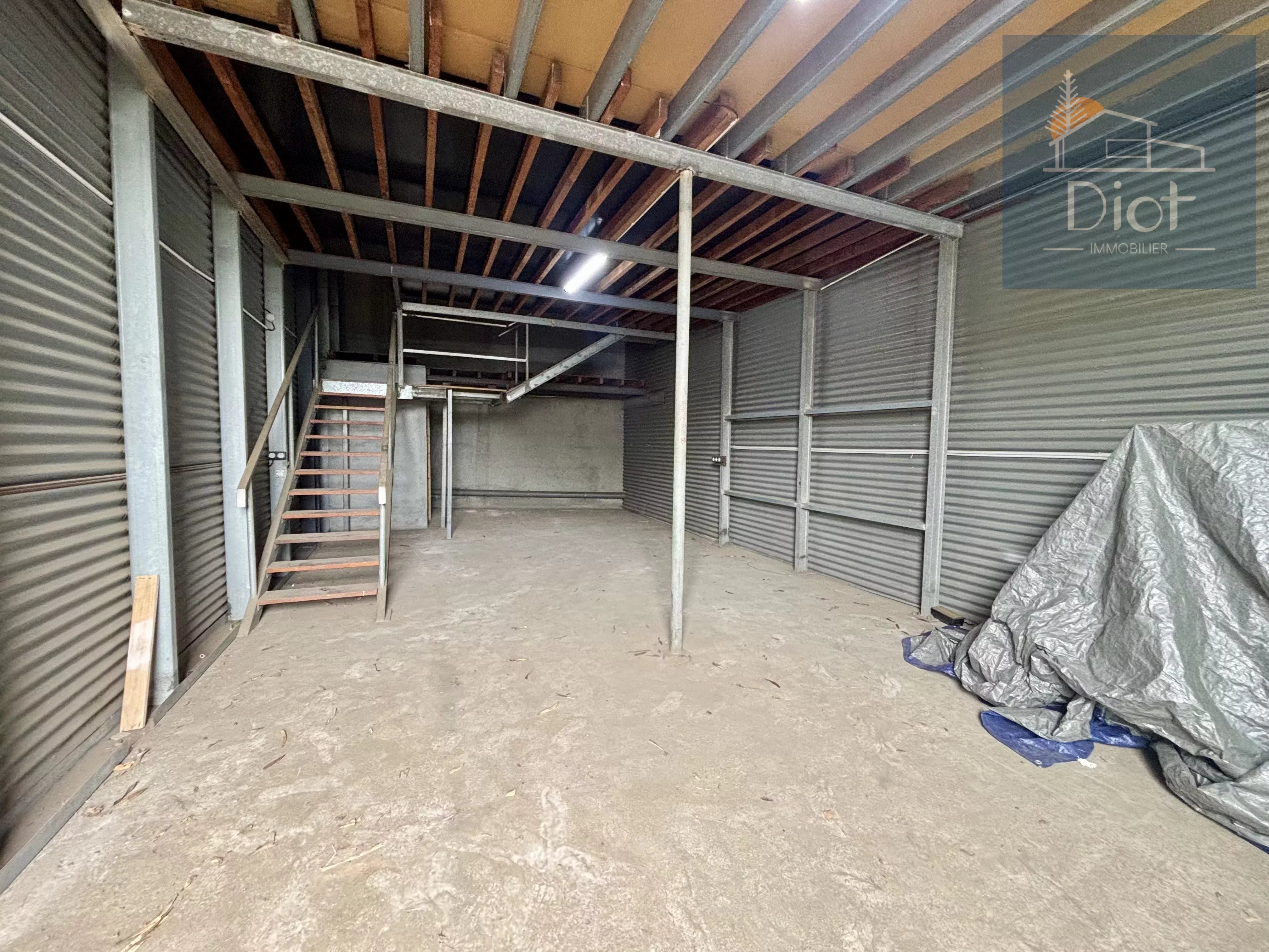 We offer for rent a 63 m² dock with 43 m² mezzanine, located on a secure, fenced site in Doniambo, ideal for a professional activity, craft or storage with office.